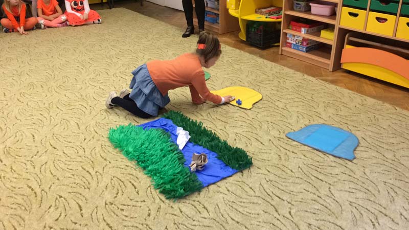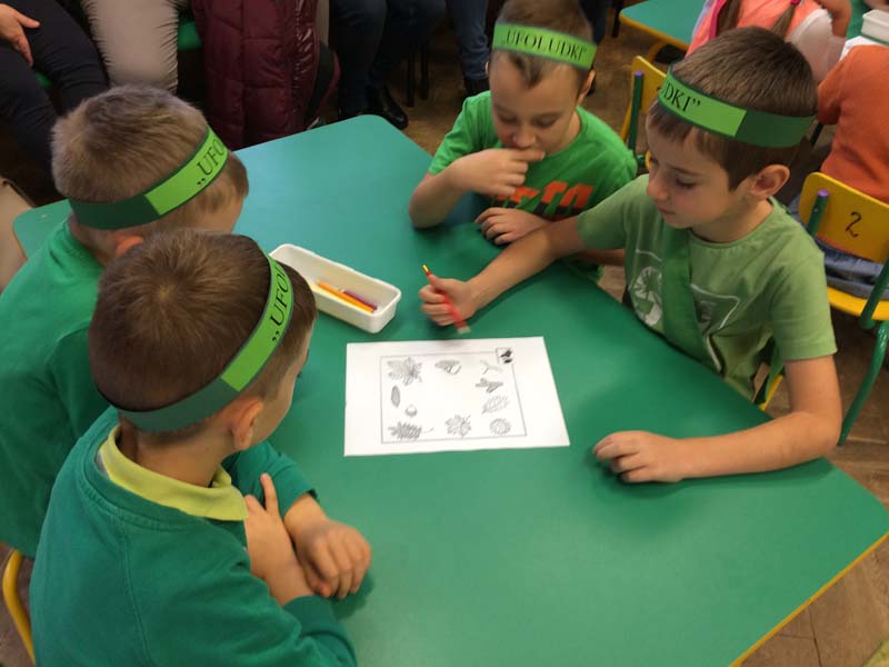 Dnia 23 listopada 2018 r. Przedszkolaki z grup „Ufoludki” i „Wiewiórki” pod kierunkiem nauczycielek: Pani Renaty Zemrys, Pani Jolanty Kukulskiej oraz Pani Beaty Cholewiak powtórnie zaprezentowały program artystyczny wymienionego konkursu uczniom Szkoły Podstawowej nr 2 w Jaśle i rodzicom w ramach zajęcia otwartego. Przedszkolaki i uczniowie klasy I rywalizowały ze sobą rozwiązując zadania umysłowe i sprawnościowe dotyczące ekologii, środowiska leśnego oraz symboli Polski. Wiedzę i umiejętności w wymienionym zakresie nagrodzono drobnymi upominkami. Dodatkowo uczniowie otrzymali od przedszkolaków przydatne im jesienne zakładki do książek z motywem barwnych liści. Na koniec wykonano pamiątkowe zdjęcia. Możliwość rywalizacji przed szerszą publicznością wpłynęła na wzmacnianie u dzieci poczucia pewności siebie zarówno w działaniu, jak i przy wypowiedzi problemowej w wyznaczonym quizem zakresie tematycznym.