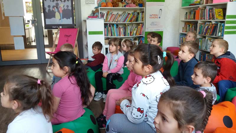 Dnia 2 października 2019 r. grupa „Wiewiórki” zapoznała się z biblioteką i sposobem wypożyczania książek. Wysłuchała głośnego czytania wybranych przez siebie pozycji i obejrzała najciekawsze egzemplarze literatury dziecięcej. Przedszkolaki z zainteresowaniem przeglądały książki o różnorodnej tematyce zgodnie wymieniając się nimi ze sobą. Wraz z Panią bibliotekarką układały opowiadanie na podstawie barwnych kart prezentujących zaskakujące zdarzenia. Dowiedziały się jak wygląda karta biblioteczna i jak się zapisać do biblioteki. Dzieci oświadczyły, że pragną być stałymi czytelnikami MBP w Jaśle!