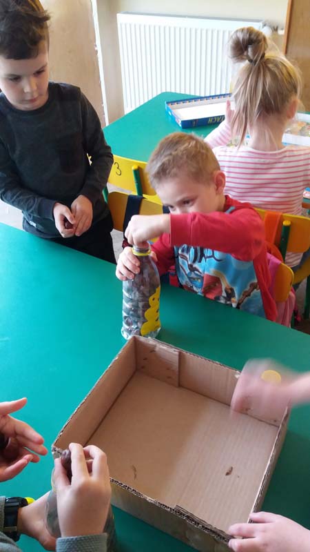 Dzieci miały możliwość wyzwalania przeżyć poprzez muzykę i plastykę; współzawodnictwa w ramach gry edukacyjnej „Sad”, zabaw zręcznościowych z wykorzystaniem materiałów odpadowych i przyrodniczych oraz wykonania innowacyjnej pracy – obrazka wodnego. Z wykonanych przez dzieci prac powstała barwna wystawka. Na koniec za duże zaangażowanie dzieci w prezentacje artystyczne przedszkolaki otrzymały jesienne puzzle „Jabłuszka”. Licznie przybyli na zajęcie Rodzice, często nagradzali dzieci brawami. Natomiast nowo poznane zabawy i gra zostały udostępnione wychowankom po zajęciu do indywidualnego wykorzystania w ramach zabaw dowolnych. Ustalono dla nich stałe miejsce na półeczce w sali, bo nadal stanowią dla dzieci atrakcyjną formę zabawy.