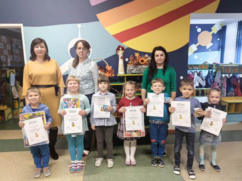 Dnia 20.11.2020 r. w naszym przedszkolu odbyło się uroczyste rozstrzygnięcie konkursu ekologiczno-plastycznego „Jesienne cudaki”. Konkurs miał na celu: inspirowanie zainteresowań plastycznych oraz promocję uzdolnionych twórców, wyłonienie oryginalnych prac plastycznych pod względem estetyki wykonania oraz indywidualnego podejścia do tematu czerpanie radości z procesu tworzenia; kształtowanie postawy twórczej wobec siebie i świata; zachęcanie do działań twórczych dzieci i rodziców. Zadaniem dzieci było wykonanie z pomocą rodziców formy przestrzennej z darów jesieni przy pomocy dostępnych narzędzi i materiałów plastycznych. Do konkursu zgłosiło udział 39 uczestników spośród których jury wyłoniło z poszczególnych grup zwycięzców. Pozostali uczestnicy konkursu otrzymali wyróżnienia, bo każda praca była bardzo ładna. W tym dniu odbyło się uroczyste wręczenie nagród i dyplomów dla poszczególnych grup biorących udział w konkursie. Pani dyrektor A. Kwiatkowska i pani K. Tryniecka gratulowały zwycięzcom i wręczały dyplomy oraz nagrody. Nagrody dla dzieci ufundował Wydział Gospodarki Komunalnej Miasta Jasła i nasze przedszkole. Organizatorami konkursu w naszym przedszkolu była pani dyrektor A. Kwiatkowska, koordynatorem konkursu pani K. Tryniecka i pani B. Cholewiak. Dziękujemy dzieciom i rodzicom za tak liczny udział w konkursie. Gratulujemy! „Jesienne cudaki” były bardzo pomysłowe i atrakcyjne.