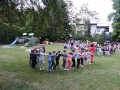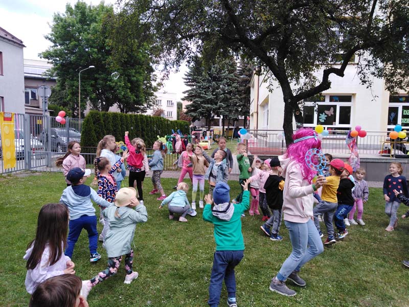 Dnia 30.05.2022 r. w naszym przedszkolu odbyła się Zabawa ogrodowa pod hasłem „Na kolorowo i sportowo”. Ogród przedszkolny, taras i okna budynku ozdobione były: kolorowymi balonami, ozdobami, bibułami i banderami. Dzięki temu stworzono dzieciom wesoły klimat do zabawy. Przygotowano dla przedszkolaków następujące atrakcje: gry, konkursy, zabawy taneczne, bańki mydlane, lody, słodki poczęstunek, soczki, owoce i prezenty. Sponsorami tegorocznego „Dnia Dziecka” był Salon Pasja Hair & Beauty i Rady Rodziców z poszczególnych grup. Przedszkolaki bawiły się świetnie, z ich twarzy nie schodził uśmiech, a cała impreza dostarczyła wielu emocji i niezapomnianych wrażeń. To był wspaniały dzień, co można zobaczyć na zdjęciach poniżej.