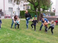 Dnia 16 maja 2023 r. w grupie „Słoneczka” i „Motylki” przeprowadzono zajęcia ruchowo – taneczne z Rodzicami w ramach Dnia Sportu. Rozpoczęto ilustracją ruchową piosenki „Gimnastyka przedszkolaka”. Grupy 3 i 4- latków rywalizowały ze sobą w ramach konkurencji sportowych: