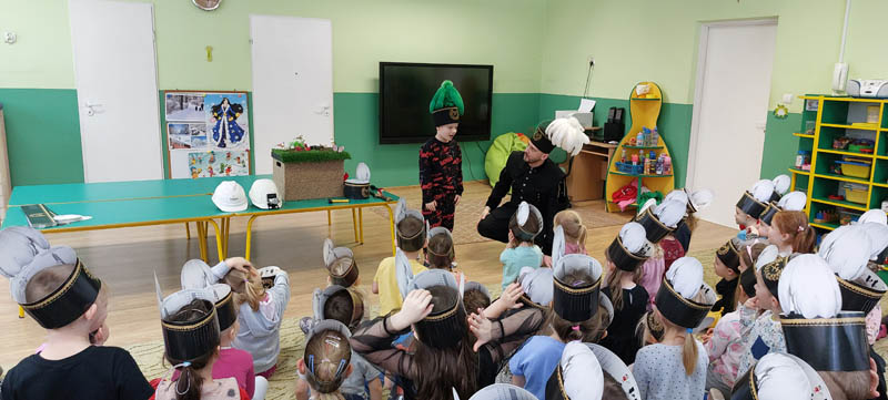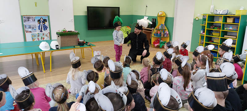 Dnia 12 grudnia 2023 r. wychowankowie Przedszkola Miejskiego Nr 10 w Jaśle spotkali się z GÓRNIKIEM – Panem Sebastianem W., który bardzo szeroko przybliżył im specyfikę tego zawodu. Dzieci poznały istotę święta „Barbórki”, rodzaje górniczego czako, symbole górnicze, flagę i inne atrybuty, minerały i surowce wydobywane przez górników z ziemi. Przedszkolaki miały również możliwość zabawy improwizowanej ruchem „W kopalni” i rozmowy z niecodziennym gościem. Niektóre przymierzyły przyniesione przez górnika różnobarwne pióropusze, kaski. Wszystkie dzieci chętnie oglądały pomoce prezentowane przez Pana Sebastiana W. i słuchały objaśnień czy opowieści tematycznych. Ponadto otrzymały od górnika piękne czapki górnicze, w których uczestniczyły w spotkaniu. Na koniec otrzymały ciekawe zadania manualne utrwalające poznaną wiedzę z wymienionego zakresu i słodycze. Spotkanie dało dzieciom mnóstwo niezapomnianych wrażeń. W imieniu wszystkich wychowanków przedszkola symboliczny upominek wręczyła górnikowi Oliwia P. z grupy „Elfy”, a starszaki z grupy „Wiewiórki” pod kierunkiem Pani Grażyny M. zaśpiewały miłemu gościowi okolicznościową piosenkę. Dziękujemy serdecznie!