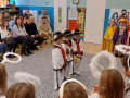 Zgodnie z tradycją nasze przedszkole zorganizowało Jasełka przedstawiające narodziny Jezusa Chrystusa . W tym roku odbyły się one 20 grudnia 2023 r., a swoją obecnością zaszczycili nas przedstawiciele Rady Rodziców oraz rodzice. Magia świątecznego nastroju, pełnego życzliwości i radości towarzyszyła całej prezentacji artystycznej. Zgromadzonych gorąco powitała zastępca dyrektor przedszkola Pani Grażyna Mikuś. W atmosferę betlejemskich wydarzeń wprowadził wszystkich rodzic naszych wychowanków Pani Izabela Mazur, która odczytała fragment z Pisma Św. Efektowny występ jasełkowy zaprezentowały dzieci 5 i 6- letnie z grupy „Elfy” przygotowane pod kierunkiem nauczycielek Pani Renaty Zemrys i Pani Anety Czeluśniak. Na koniec życzenia świąteczne złożyła wszystkim zebranym dyrektor przedszkola Pani Anna Kwiatkowska. Mali artyści zostali nagrodzeni gromkimi brawami. Jasełka zakończono wspólnym łamaniem się opłatkiem, składaniem życzeń oraz wigilijnym posiłkiem. Uroczystość sprzyjała wzajemnej integracji. Dnia 21 grudnia 2023 r. dzieci z grupy IV wystąpiły ponownie dla swoich rodziców.