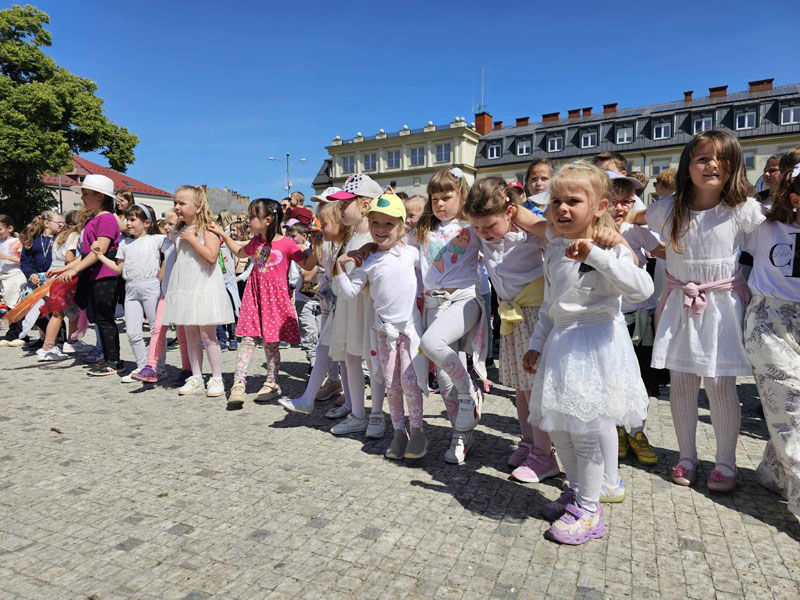17 maja 2024r nasze przedszkole włączyło się w akcję Fishmob „Cała Polska tańczy dla św. Jana Pawła II”, zorganizowanej w celu uczczenia urodzin Papieża Polaka. Młodzi ludzie z ZS nr 4 w Jaśle pod kierunkiem s. Magdaleny wraz z dziećmi, uczniami i zgromadzonymi Jaślanami zatańczyli i zaśpiewali Ojcu Świętemu. Piękna pogoda, wspólne tańce i piosenki uświetniły ten dzień. W akcji wzięły udział dzieci z grupy Motylki i Wiewiórki. Naszym przedszkolakom licznie towarzyszyli w zabawie Rodzice.