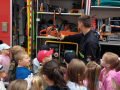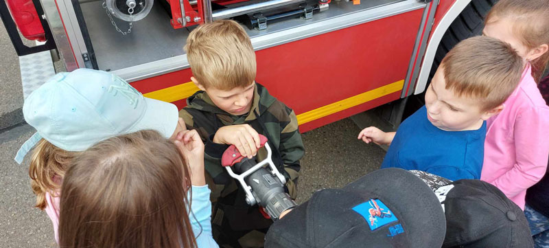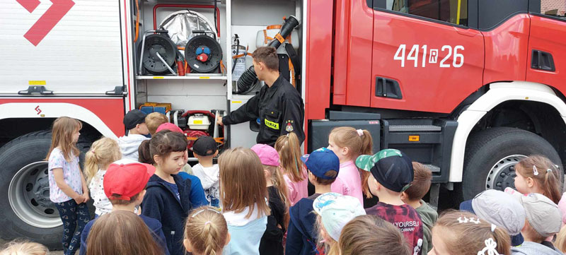 Dnia 14 czerwca 2024 r. przedszkolaki ze starszych grup udały się z wizytą do Komendy Powiatowej Państwowej Straży Pożarnej w Jaśle. Starszaki w trakcie spotkania poznały wyposażenie wozów strażackich, sprzęt, jaki używa strażak podczas akcji ratunkowych. Oprócz poznania tajników pracy strażaka przedszkolaki zdobyły bardzo cenną wiedzę na temat zasad bezpieczeństwa. Młodsze dzieci także miały okazję poznać specyfikę pracy strażaków podczas zorganizowanego spotkania w naszym przedszkolu. Strażacy w bardzo ciekawy sposób omówili i zademonstrowali wyposażenie konieczne do wykonywania swoich obowiązków. Składamy serdeczne podziękowania Strażakom za miłe przyjęcie.